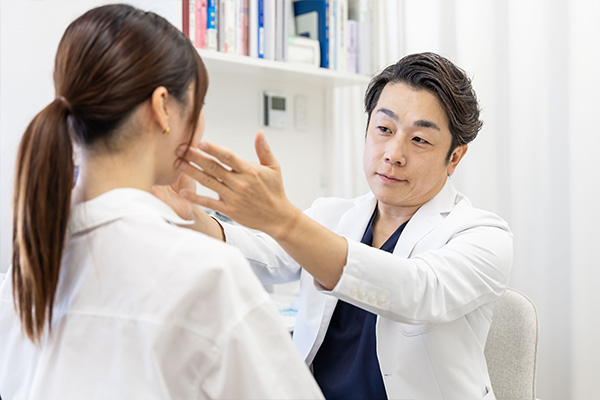 カウンセリングを行います。現在のお悩み、ご希望をしっかりとお伺いいたします。肌質などについてもこの際に診察いたします。ご希望に沿えるよう、カウンセリングには時間をかけさせて頂いております。